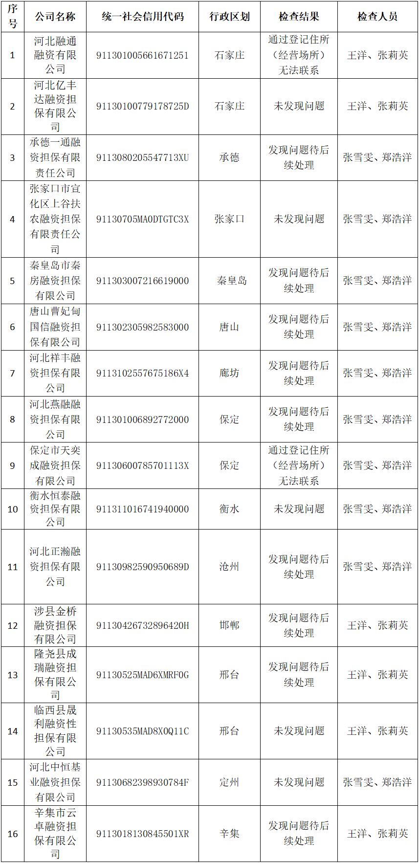 2024年下半年河北省地方资产管理公司执法检查结果公示