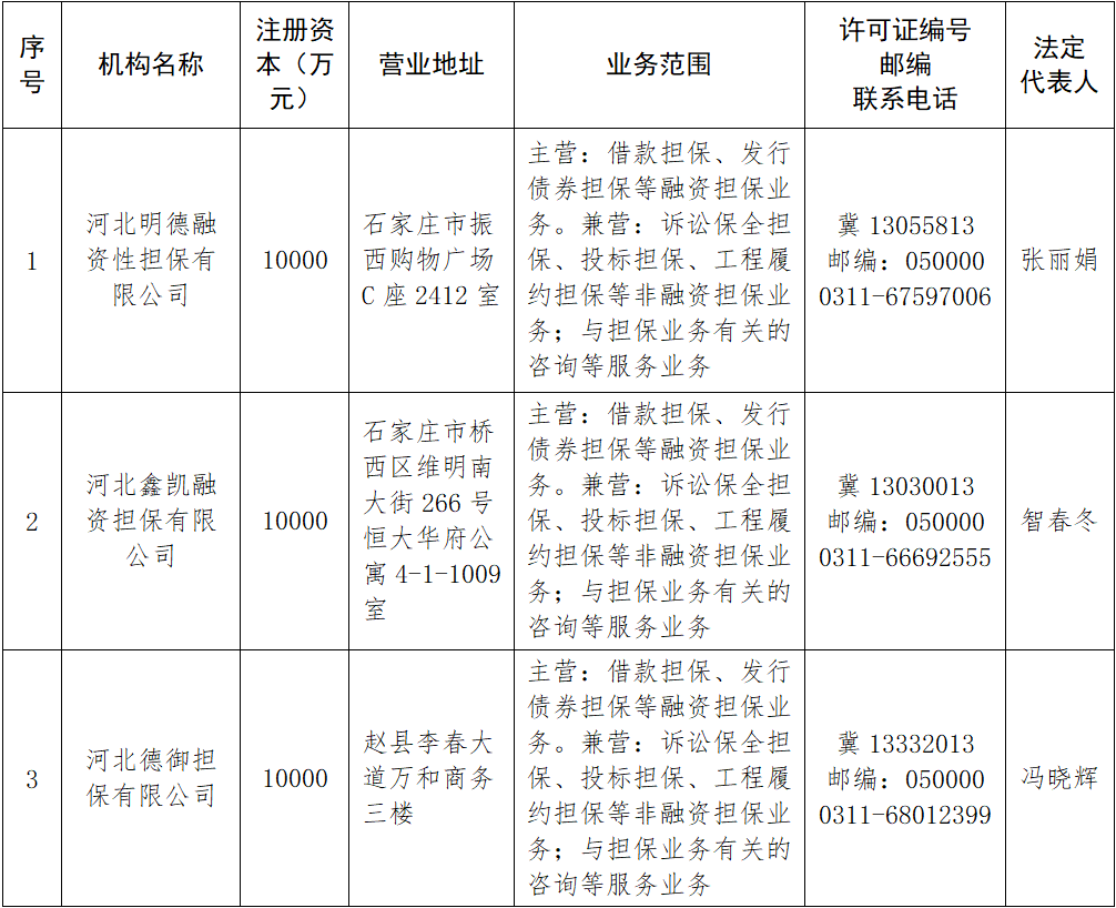 关于注销河北明德融资性担保有限公司等3家公司融资担保业务经营许可证的公示