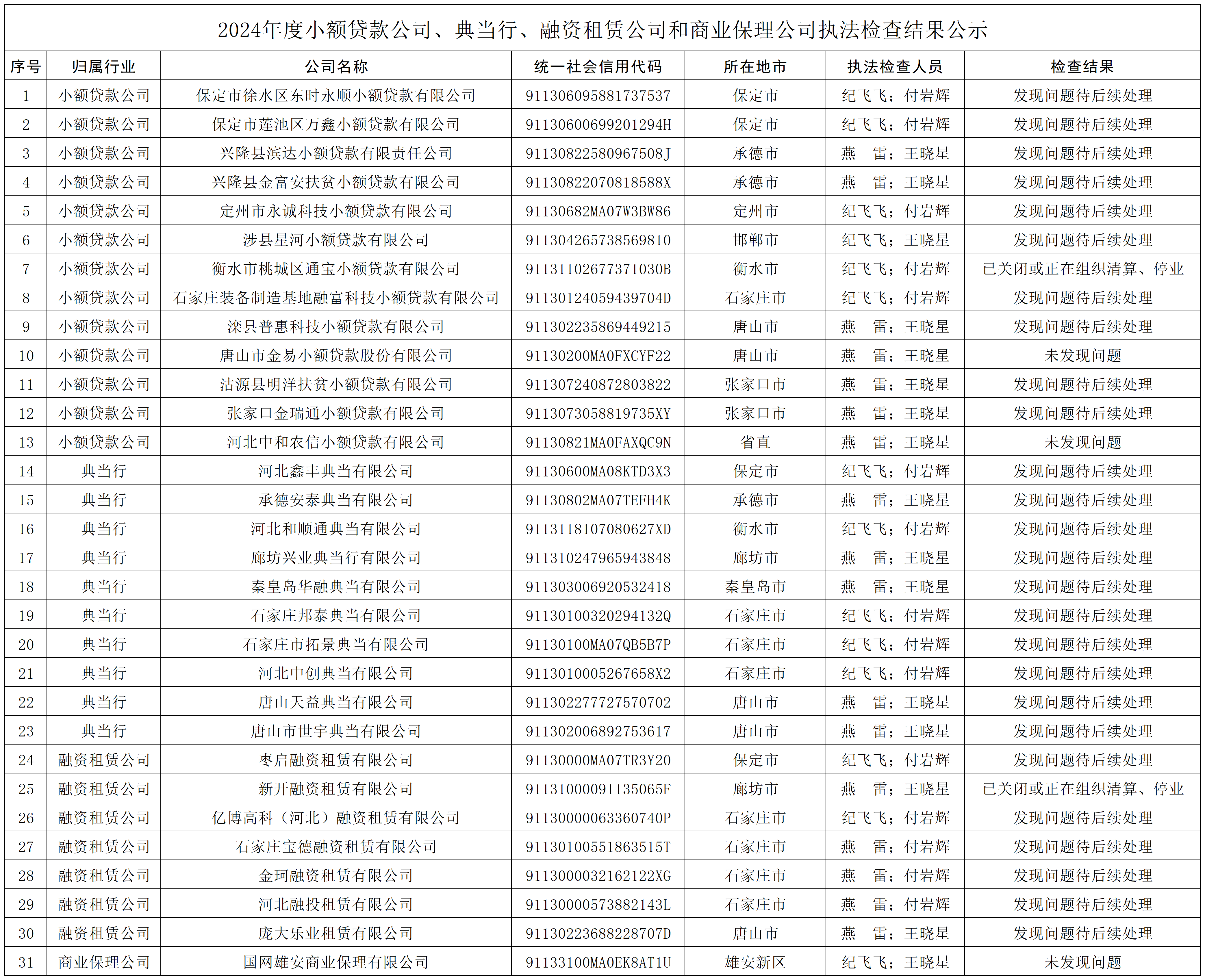2024年下半年河北省地方资产管理公司执法检查结果公示