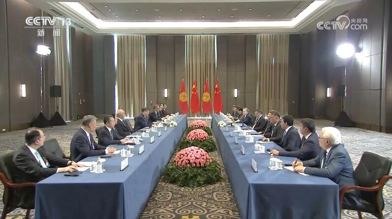 习近平指出,建交33年来,中吉关系实现跨越式发展,处于历史最好时期。今年2月我们在北京举行富有成果的会晤,达成一系列重要共识,为两国合作注入新的强劲动力。中方愿同吉方一道,持续深化发展战略对接,在涉及彼此核心利益和重大关切问题上继续坚定相互支持,维护好双方共同和长远利益。
