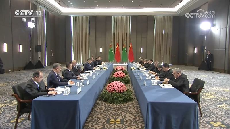 当地时间6月17日上午,国家主席习近平在阿斯塔纳出席第二届中国—中亚峰会期间会见土库曼斯坦总统别尔德穆哈梅多夫。