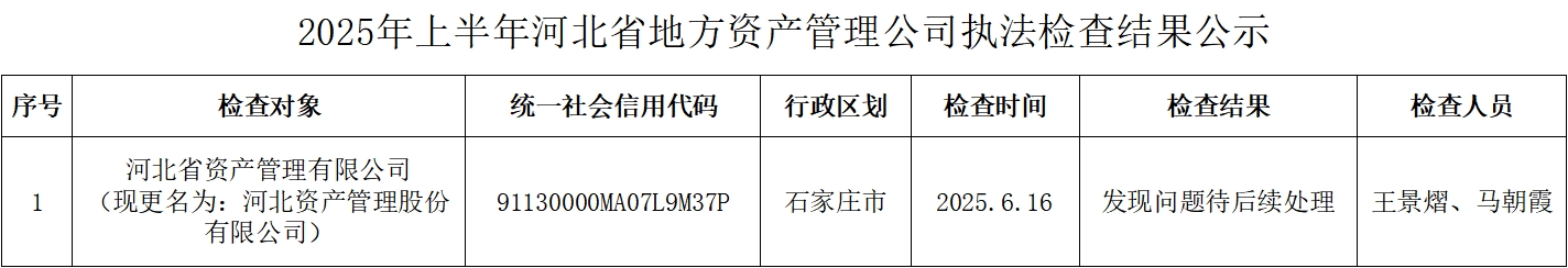 2024年下半年河北省地方资产管理公司执法检查结果公示