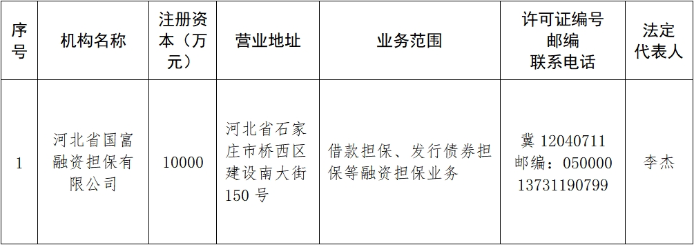关于拟注销河北省国富融资担保有限公司融资担保业务经营许可证的公示